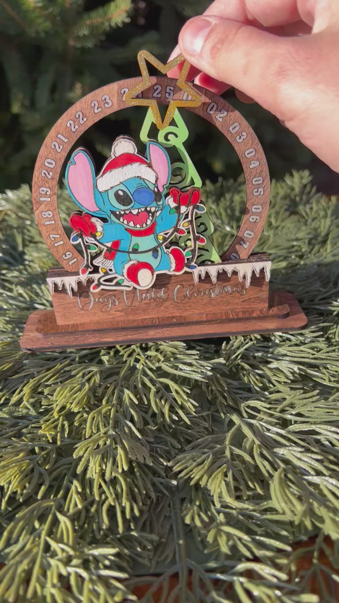 At the top, a glittery star pointer spins around the numbered arch, allowing you to update the countdown day by day. Kids and Stitch fans will love checking it each morning—making this a fun and memorable piece to bring out year after year!